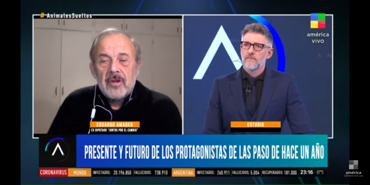 TV Eduardo Amadeo: “Alberto hace lo que Cristina quiere” Radio11 de agosto de 20201 Minutos de lectura 11-08-2020 – Eduardo Amadeo, ex diputado de Juntos por el Cambio, habló en Animales Sueltos, mirá la nota: FacebookTwitter