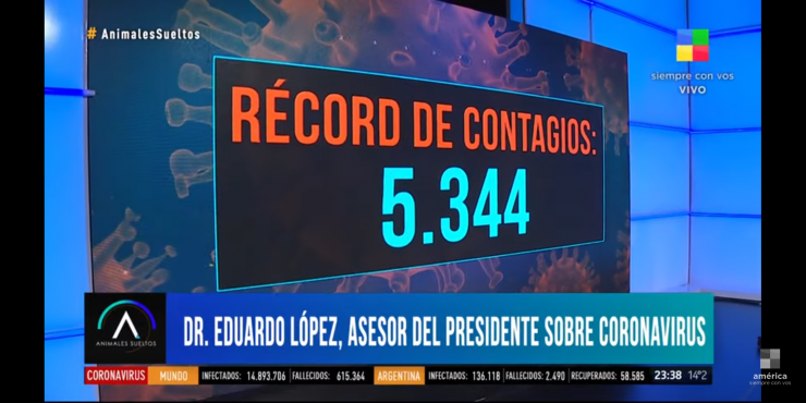 TV Eduardo López: "Estamos transitando hacia el pico" LN21 de julio de 20201 Minutos de lectura 21-07-2020 – Eduardo López, infectólogo, habló en Animales Sueltos con Luis Novaresio, mirá la nota:https://youtu.be/Mv5qV-4J7_I FacebookTwitter