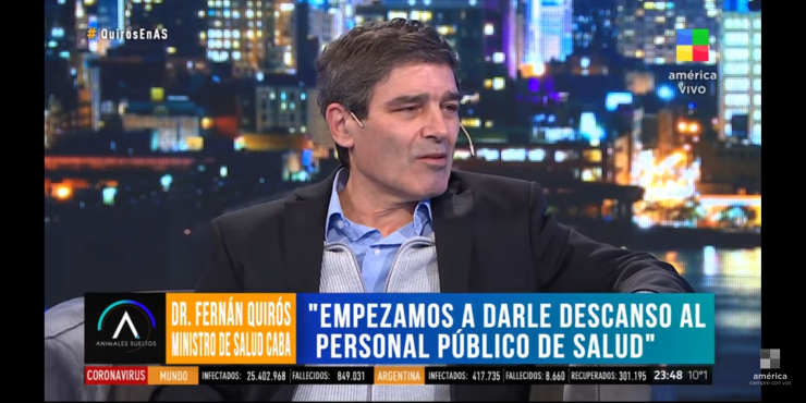 31-08-2020 – Fernán Quirós, Ministro de Salud de la Ciudad de Buenos Aires, habló con Luis Novaresio en Animales Sueltos “Después de cinco meses y medio, todavía todo es riesgo. Asustar a la gente, no es la forma correcta.