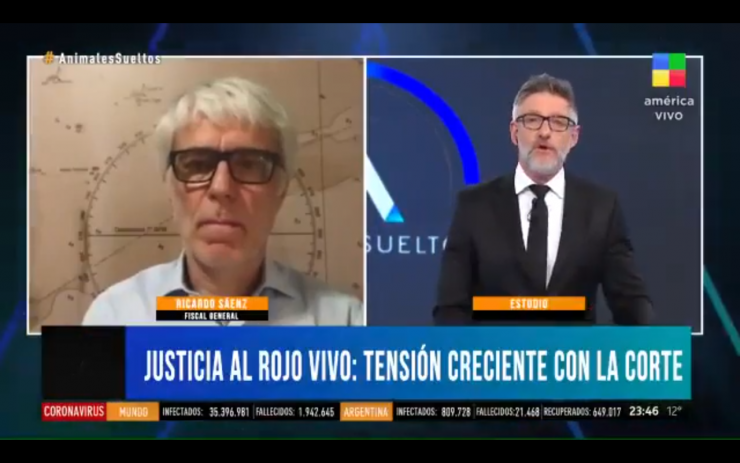 TV Ricardo Sáenz: “Si esta es la agenda del Gobierno en materia judicial, a mi me preocupa” Radio5 de octubre de 20201 Minutos de lectura 05-10-2020 – El fiscal general Ricardo Sáenz habló en Animales Sueltos con Luis Novaresio Mirá la entrevista FacebookTwitter