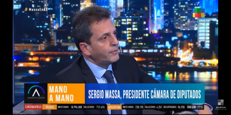 TV “No hay que ampliar la corte”, “Venezuela es una dictadura”, “volverá la movilidad jubilatoria por ley”, “Macri desprecia a los argentinos” y otras definiciones de Sergio Massa Radio7 de agosto de 20201 Minutos de lectura 06-08-2020 – Sergio Massa, Presidente de la Cámara de Diputados, habló mano a mano con Luis Novaresio en Animales Sueltos, mirá la nota: FacebookTwitter